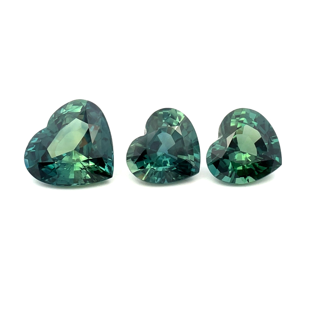 13.50cts Bellerophon Natural Unheated Teal Sapphire Gemstone Set - Heart Shape - 24469RGT / 24375AFR