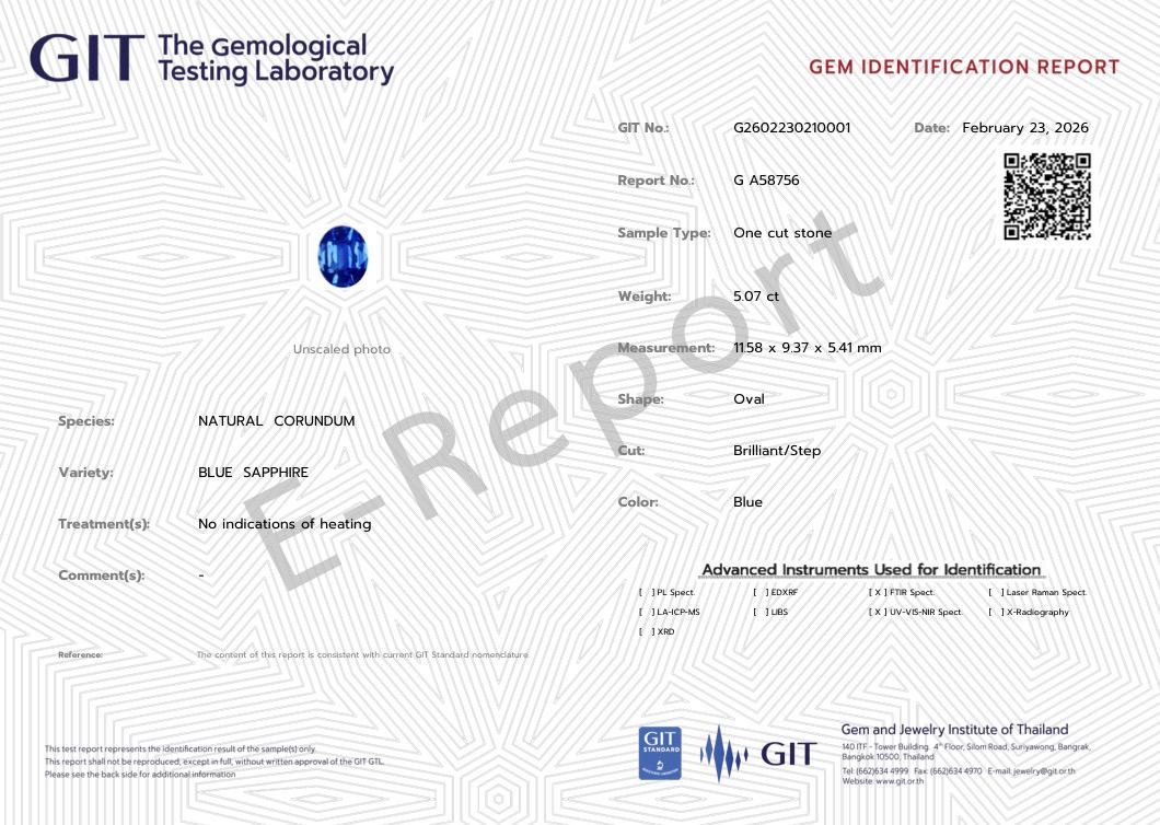 5.08cts GIT Natural Unheated Blue Sapphire Gemstone - Oval Shape - 26516RGT