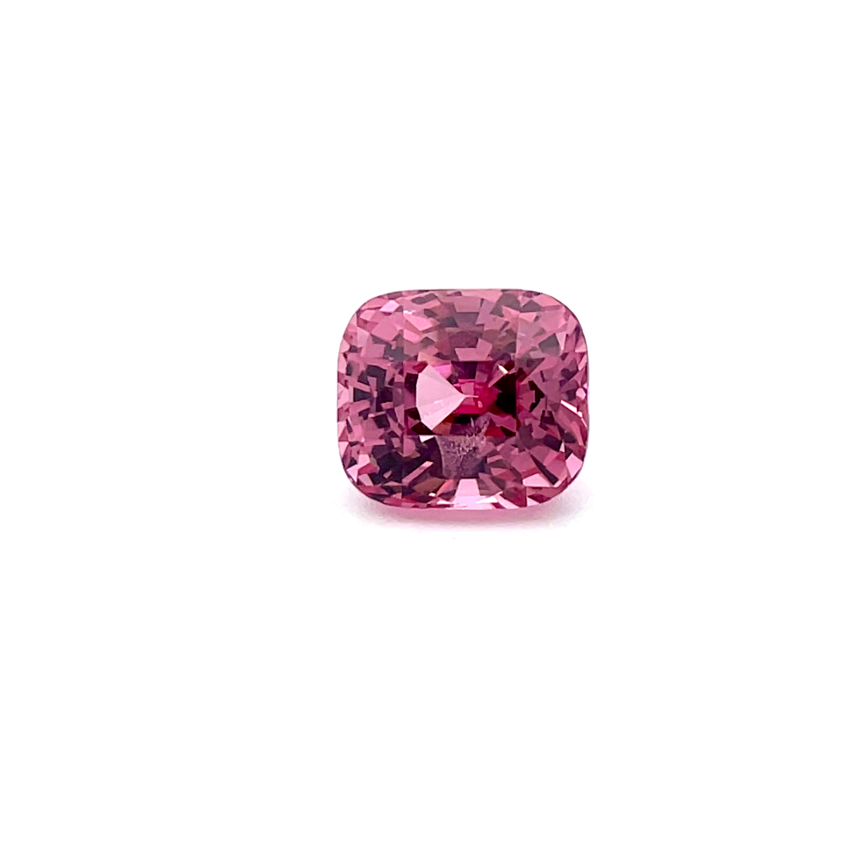 This refined 3.13-carat Natural Malaya Garnet presents an understated yet captivating presence. Originating from Tanzania, this cushion-cut gemstone features masterful faceting that reveals its soft pink hue with gentle luminosity. Measuring 8.0 x 6.9 x 6.2 mm, the stone displays the natural characteristics of authentic gemstones with slight inclusions, while remaining entirely untreated to honor its genuine provenance.  An ideal acquisition for collectors who appreciate the purity and integrity of natural gemstone beauty.