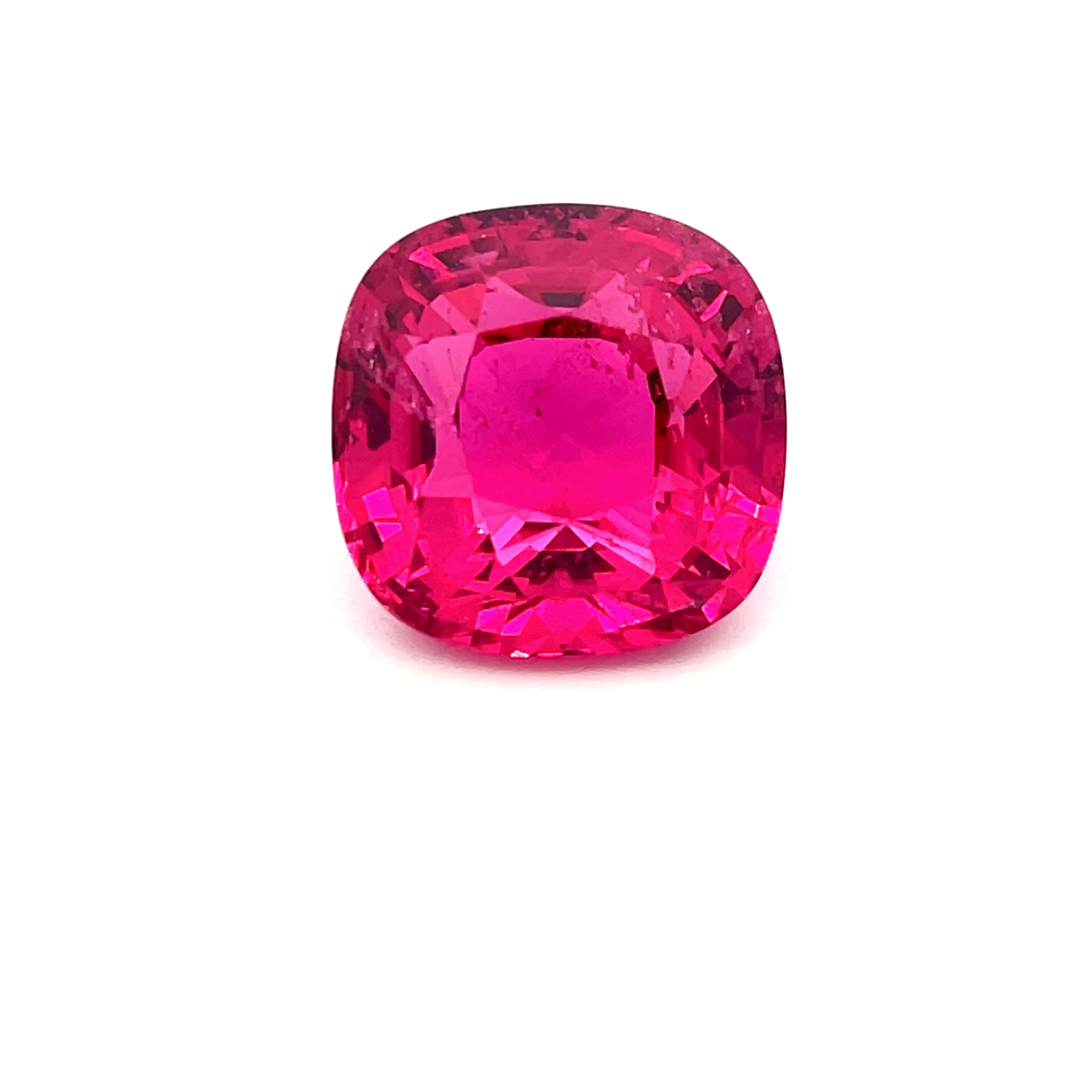 This exquisite 6.21-carat natural spinel showcases a vivid pinkish-red hue that captures light with remarkable brilliance. Sourced from the renowned Mahenge region of Tanzania, this cushion-cut gemstone measures 10.3 x 10.3 x 6.9 mm and features faceted precision craftsmanship. With slight inclusions and completely untreated, it represents authentic gemstone quality for the discerning collector. A sophisticated choice for fine jewelry or investment-grade collections.