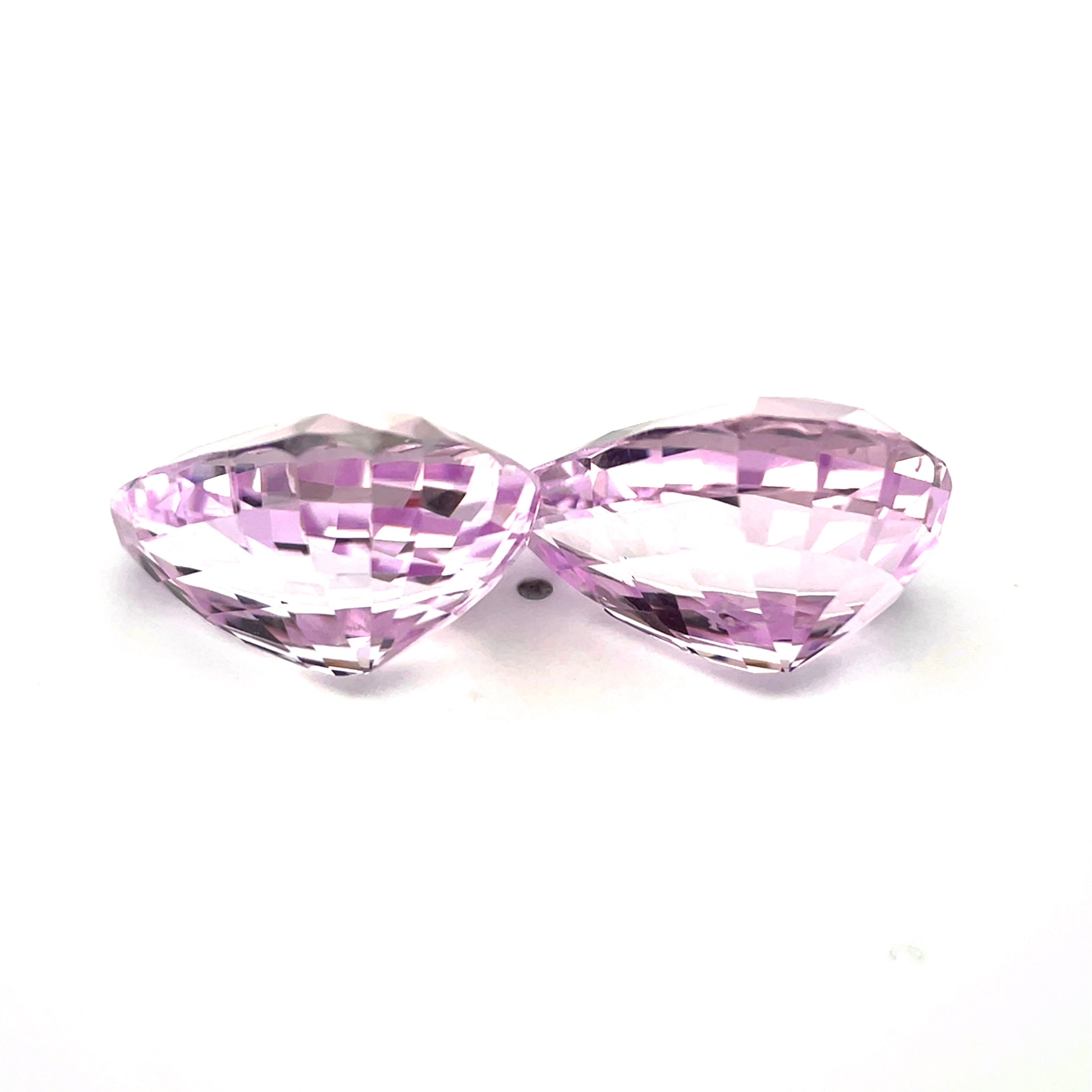 Discover this exceptional 38.60-carat natural kunzite pair, each stone cut into an elegant pear silhouette that captures light with refined brilliance. Sourced directly from Pakistan's premier gemstone deposits, these untreated specimens showcase a captivating light pink coloration and measure 20.2 x 14.4 x 10.8 mm. Their slightly included clarity reflects the genuine character of nature's finest creations. Ideal for bespoke jewelry commissions, this matched pair delivers both substantial presence and sophisticated beauty for the most discerning gemstone enthusiasts.