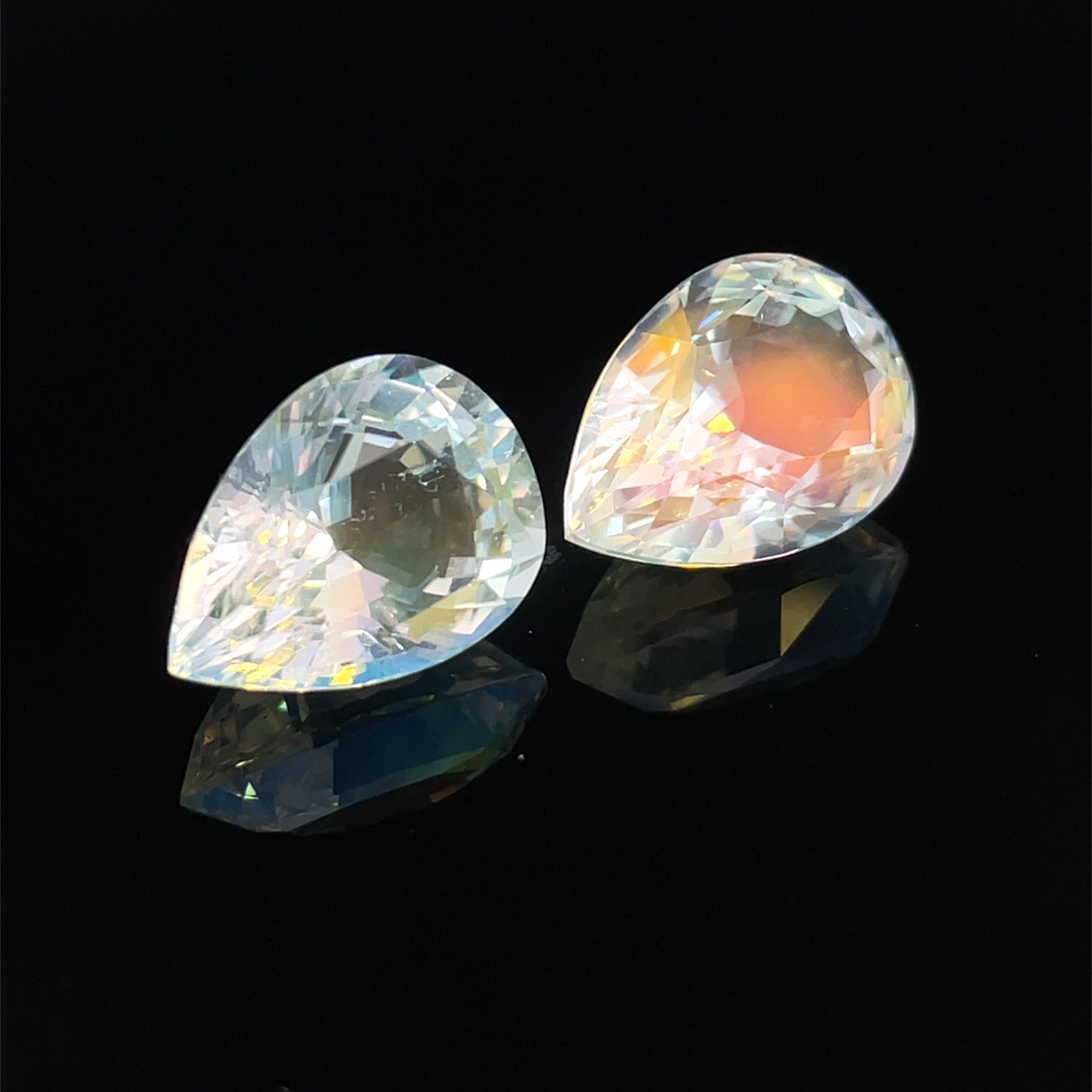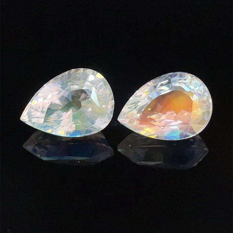 7.52cts Natural Rainbow Moonstone Gemstone Pair - Pear Shape - 26343RGT