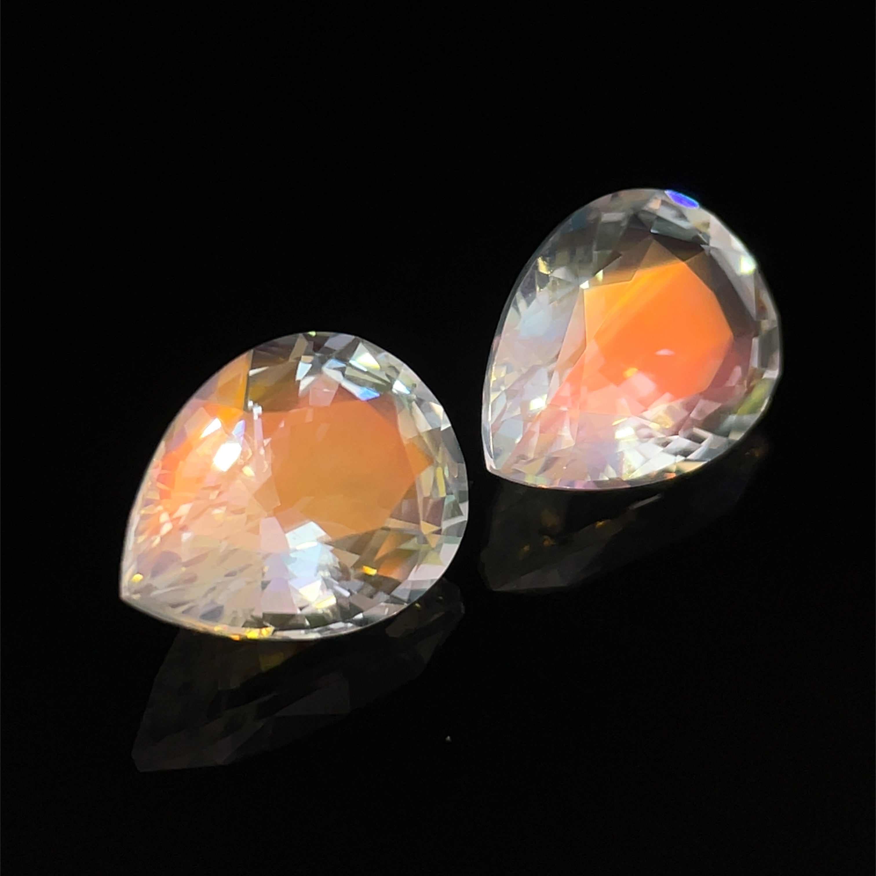 8.59cts Natural Rainbow Moonstone Gemstone Pair - Pear Shape - 26346RGT