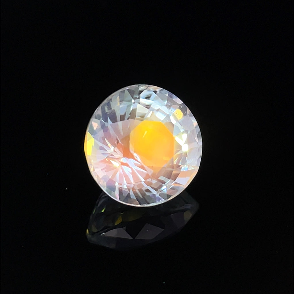 Behold the timeless elegance of this 4.27-carat natural rainbow moonstone, masterfully cut into a classic round form that showcases its luminous adularescence. Extracted from Madagascar's premier gemstone deposits and presented in its natural, untreated state, this faceted treasure reveals the subtle chromatic shifts moonstone is prized for. Measuring 10.4 x 10.3 x 7.7 mm with gentle natural inclusions, it stands as an ideal selection for refined jewelry commissions and devoted collectors.