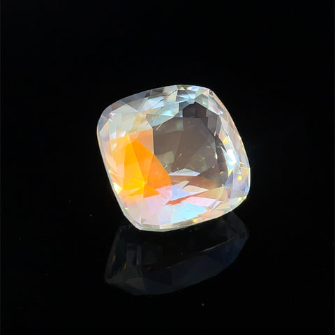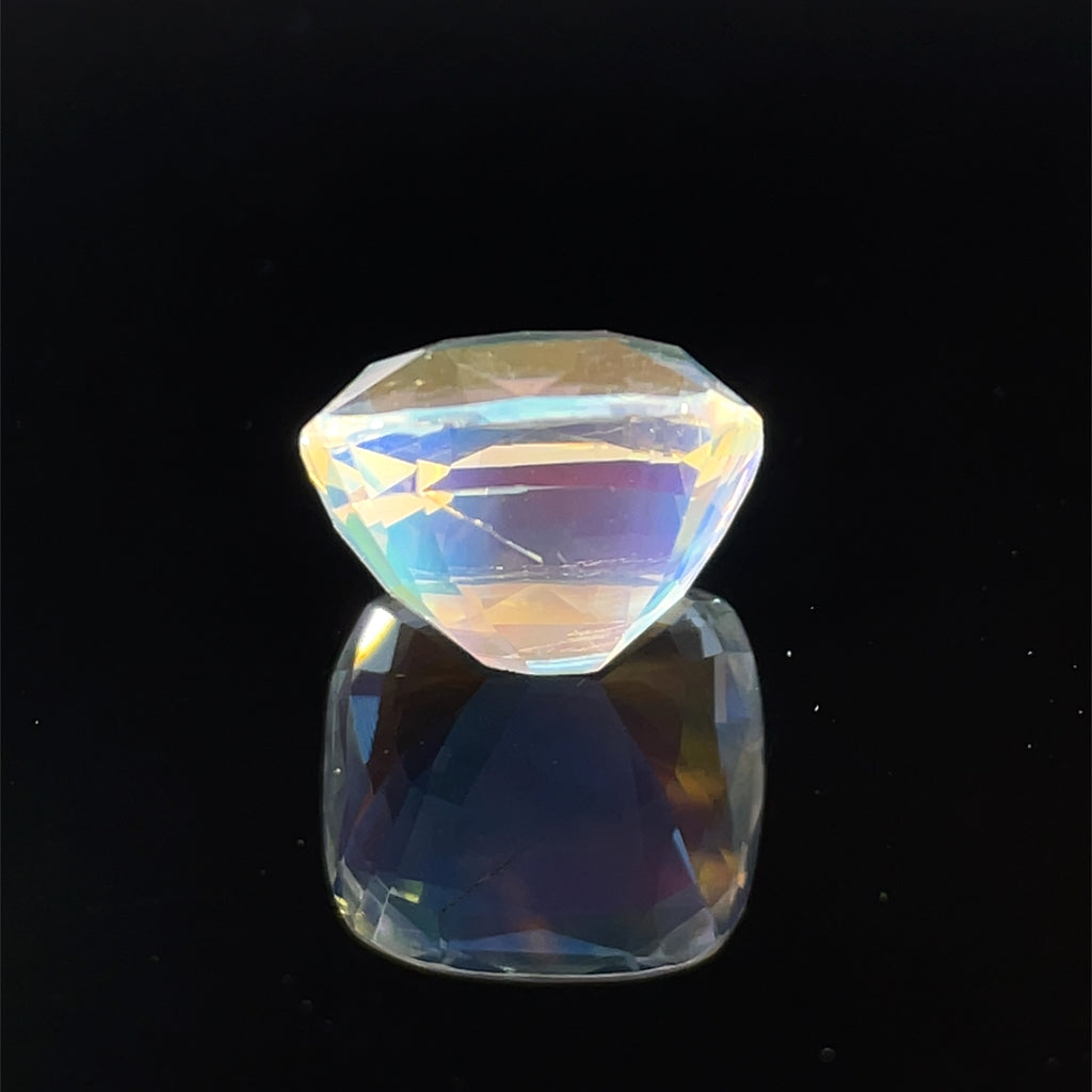 Discover the ethereal beauty of this 6.91-carat natural rainbow moonstone, sourced from Madagascar's renowned gemstone deposits. Cut in a sophisticated cushion shape and faceted to enhance its luminous play of color, this gemstone showcases the stone's characteristic rainbow adularescence. Measuring 11.6 x 11.3 x 8.3 mm with slight inclusions that attest to its natural origin, this untreated moonstone offers authentic elegance for collectors and jewelry artisans alike.