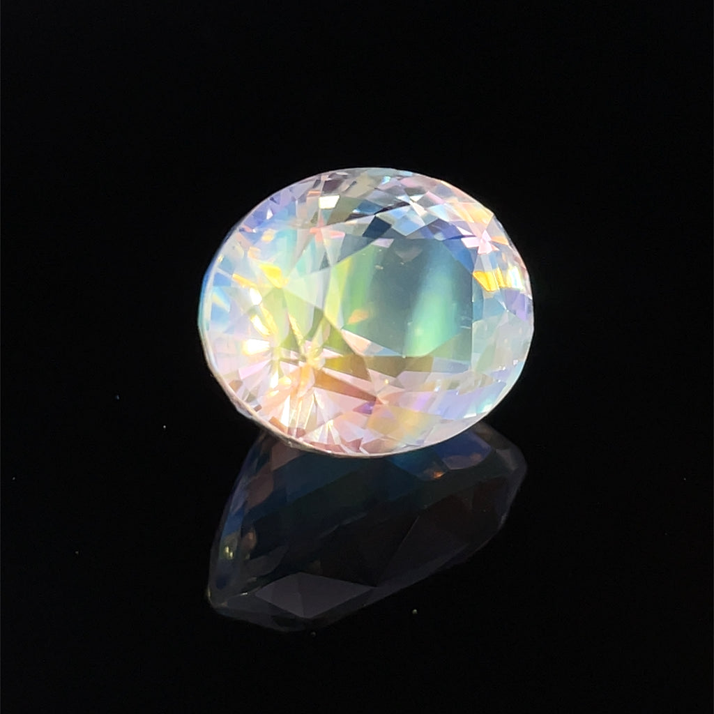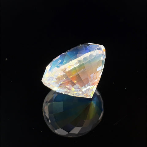 This exquisite 7.48-carat natural rainbow moonstone showcases the stone's legendary play of light with its mesmerizing adularescence. Cut in a refined oval shape measuring 13.3 x 10.5 x 9.4 mm, this faceted gemstone displays a captivating rainbow sheen across its surface. Sourced from Madagascar and completely untreated, it retains its authentic character with slight inclusions that speak to its natural origin. An ideal selection for collectors and jewelry artisans seeking a genuine, luminous centerpiece with timeless elegance.