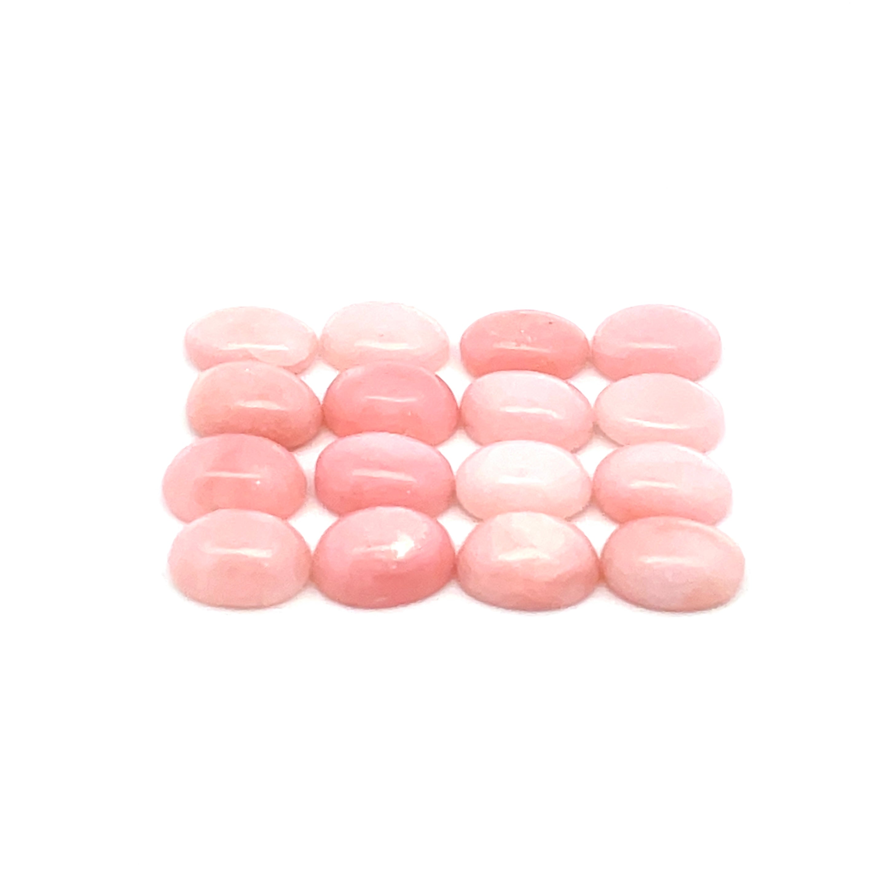 Discover the delicate charm of this 16-piece collection of natural Pink Opal gemstones, with a total weight of 10.01 carats. Each oval cabochon measures 7 x 5 mm, exhibiting a soft pink color sourced directly from Peru's renowned deposits. Completely untreated and unheated, these stones retain their natural purity, making them ideal for exquisite jewelry creations.