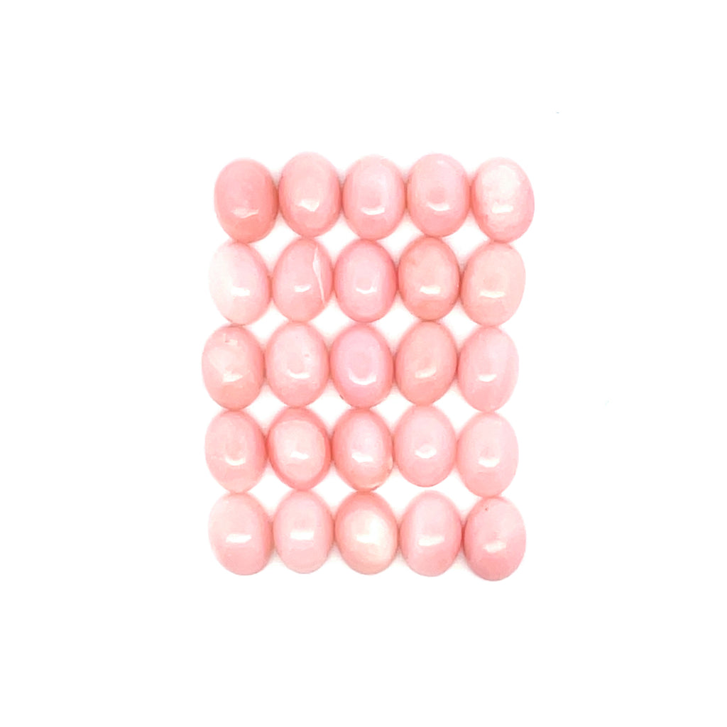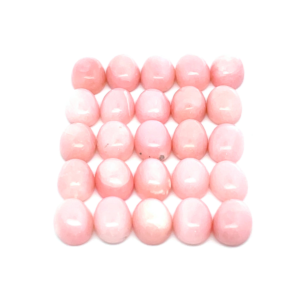 Experience the understated elegance of this 25-piece lot of natural Pink Opal gemstones, totaling 27.41 carats. Each oval cabochon, measuring 8 x 6 mm, showcases a serene pink hue unique to Peru's rich deposits. Untreated and unheated, these stones offer pure, authentic beauty, perfect for refined jewelry designs or collector's treasures.