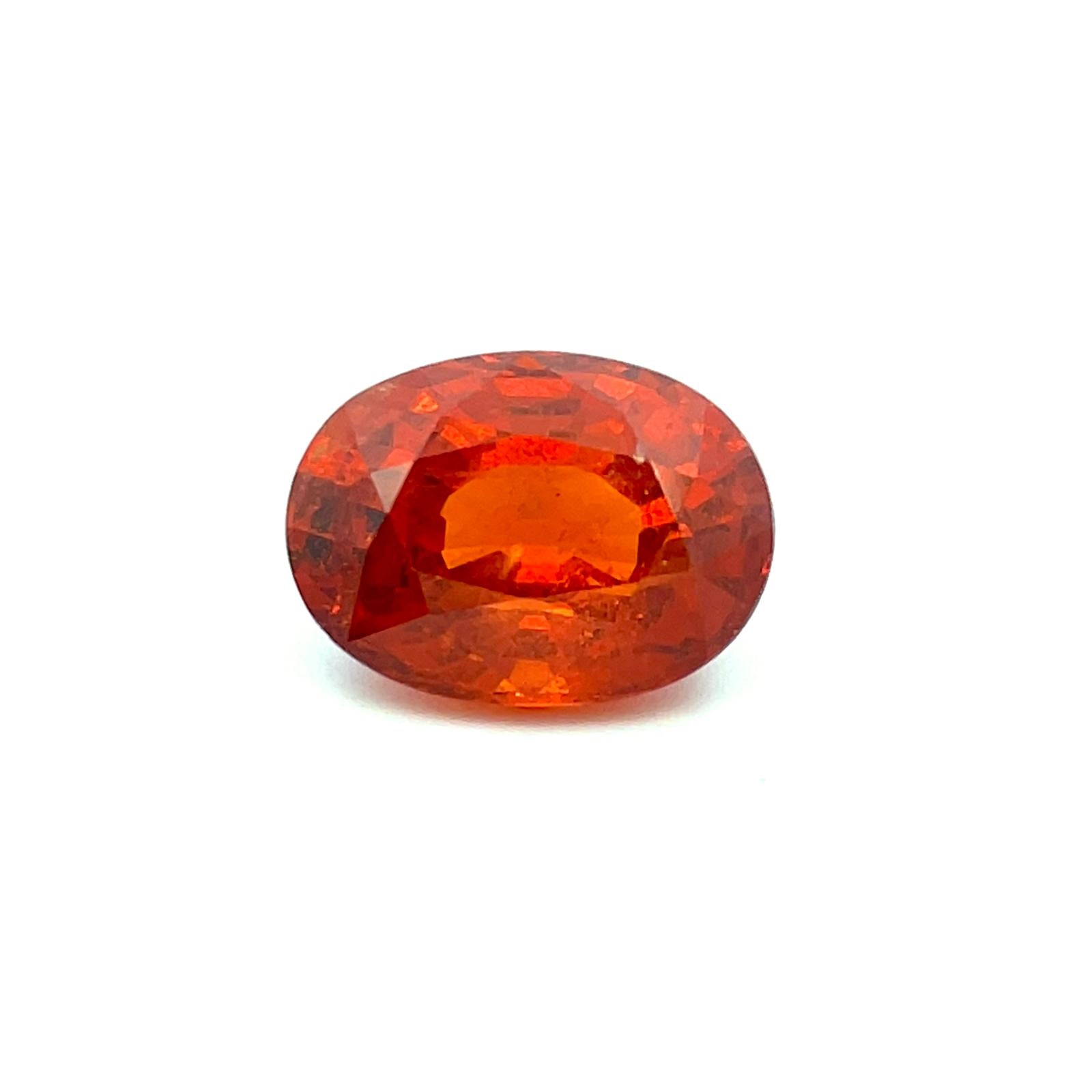 This striking 6.52-carat natural Spessartite Garnet captures the essence of Fanta orange with its vivid, saturated hue. Expertly faceted into an oval silhouette measuring 12.1 x 8.8 x 6.6 mm, the stone delivers impressive visual impact in a versatile size. With slight inclusions and no treatments applied, it retains its complete natural character and authenticity. An outstanding choice for bespoke jewelry designs or as a prized addition to a refined gemstone collection, offering both beauty and genuine provenance.