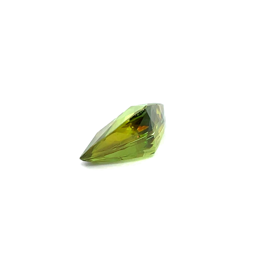 This distinctive 2.69-carat natural green sphene showcases contemporary elegance through its striking trilliant cut. Measuring 12.9 x 7.2 x 5.3 mm, this faceted gemstone presents an unconventional silhouette that amplifies the luminous brilliance and verdant hue characteristic of fine sphene specimens. Entirely natural and unheated, it maintains its authentic character with slightly included clarity that reflects its genuine geological origin. A sophisticated selection for the collector seeking a rare, geometrically distinctive gemstone of exceptional quality and refined aesthetic presence.
