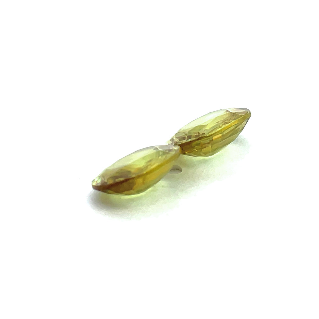 This remarkable matched pair of natural green sphenes totals 3.54 carats of unparalleled gemstone excellence from Madagascar. Each stone features an elegant oval cut with faceted brilliance, measuring approximately 9.1 x 7.0 mm with complementary depths of 3.3 and 3.6 mm respectively. Displaying a luminous green coloration with subtle inclusions that confirm their authentic provenance, these completely untreated specimens remain in their pristine natural state. Perfect for coordinated jewelry designs or the sophisticated collector.