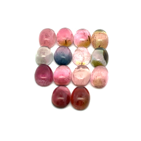 22.22cts 14Pcs Lot Natural Bi-Color Tourmaline Gemstone - 8X6MM - Oval Cabochon - 25254RGT