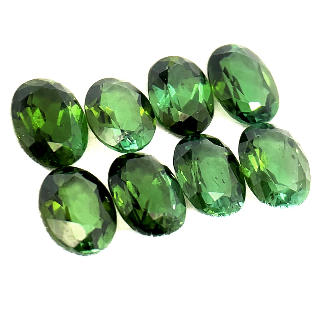 Presenting a curated selection of eight natural green tourmalines, each meticulously faceted into a graceful oval form measuring 7 x 5 mm. Sourced from Africa's esteemed gemstone regions, this 6.12-carat parcel comprises completely untreated stones, preserving their authentic mineral composition and inherent beauty. The uniform dimensions and consistent emerald-green coloration throughout the collection render it exceptionally suitable for bespoke jewelry commissions requiring matched gemstones of superior quality. These specimens represent genuine, unaltered natural material—ideal for discerning collectors and master craftspeople who demand authenticity and excellence in their gemstone selections.