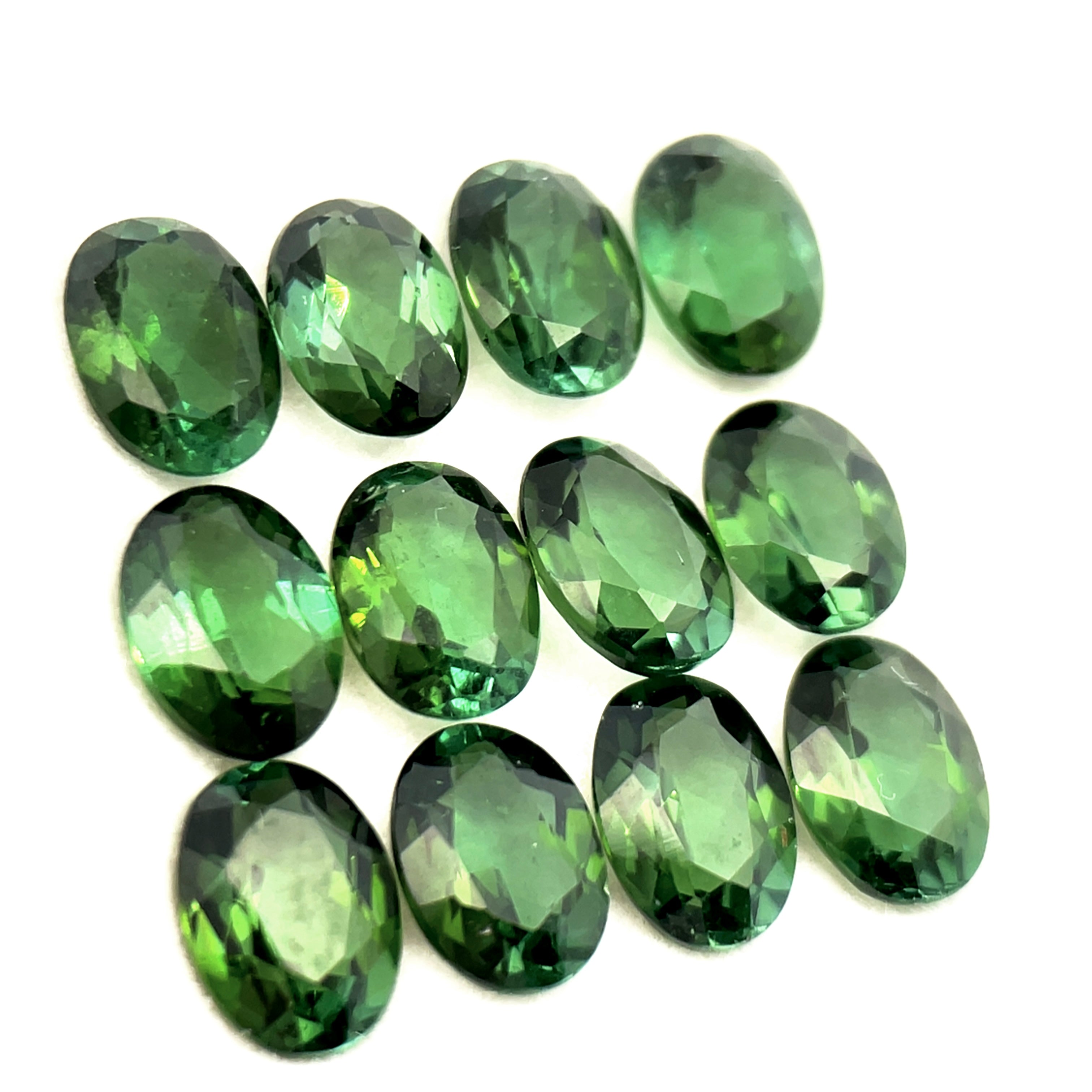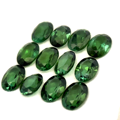 This exquisite collection features 12 pieces of natural green tourmaline, totaling 9.57 carats of unheated, untreated gemstone excellence. Each stone measures 7 x 5mm in elegant oval shape with precise faceting that captures light beautifully. Sourced from Africa, these tourmalines showcase authentic green hues with no enhancementsâa testament to nature's artistry. Perfect for jewelry designers, collectors, and those seeking genuine gemstone quality.Â