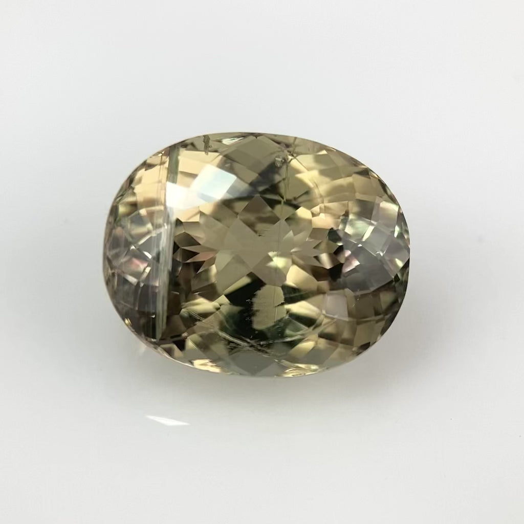 Experience the captivating beauty of this 10.10cts Natural Khaki Green Diaspore Color Change Gemstone. The oval shape and faceted cut enhance the stunning transformation from khaki green to raspberry red. With visible inclusions, this gem is a natural wonder from Turkey, untreated for maximum authenticity.
