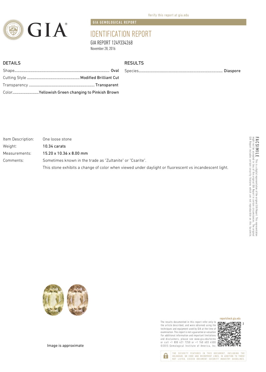 10.34cts GIA Natural Khaki Green Diaspore Color Change Gemstone - Oval Shape - 21864RGT