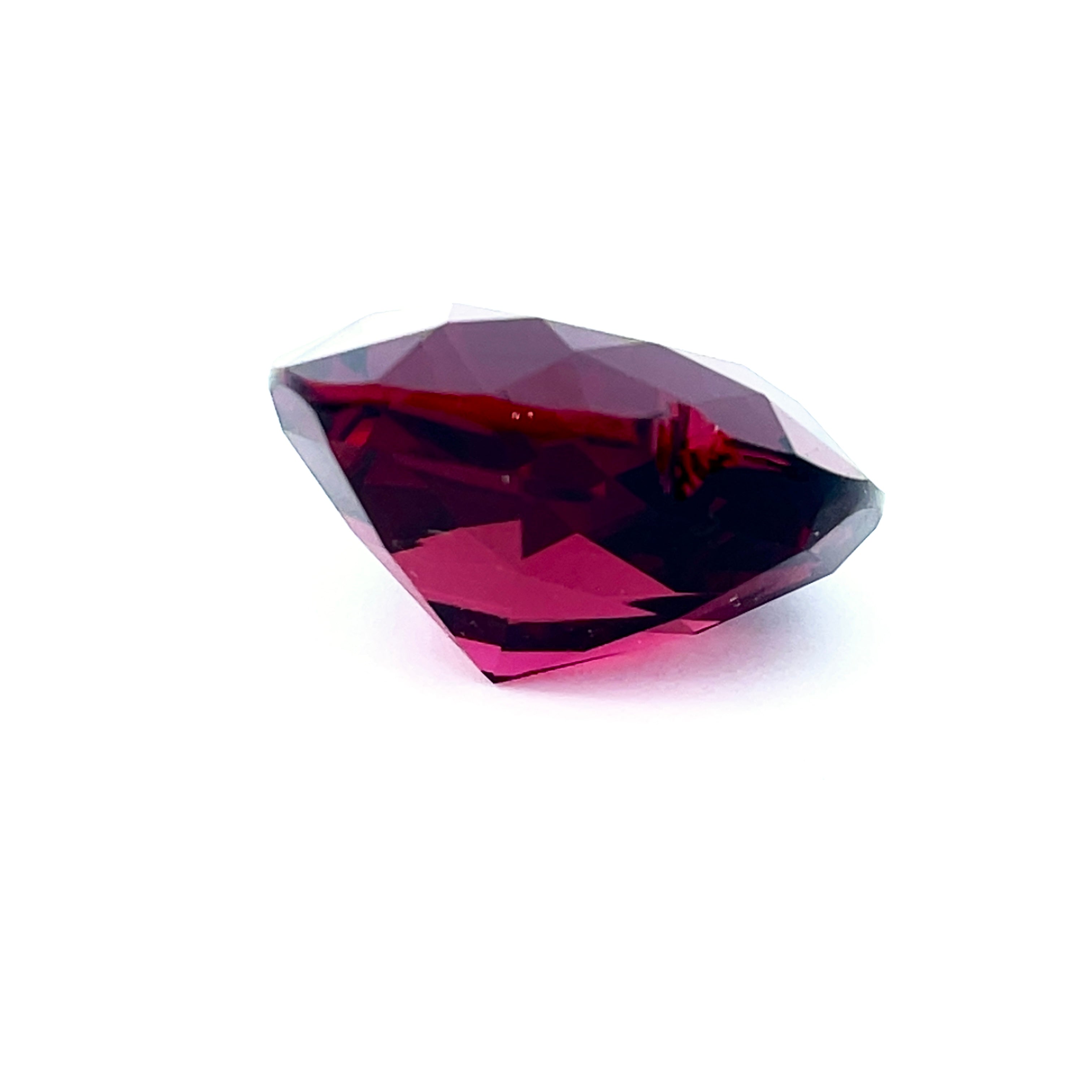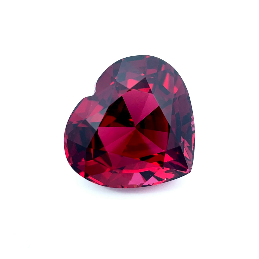 This exquisite 17.21-carat natural Rhodolite Garnet showcases a captivating purplish red hue in a finely faceted heart shape. Sourced from Tanzania, this gemstone’s slight inclusions affirm its natural origin and untreated purity. Its substantial size and rich color make it an exceptional choice for refined jewelry, embodying both elegance and natural beauty with timeless appeal.