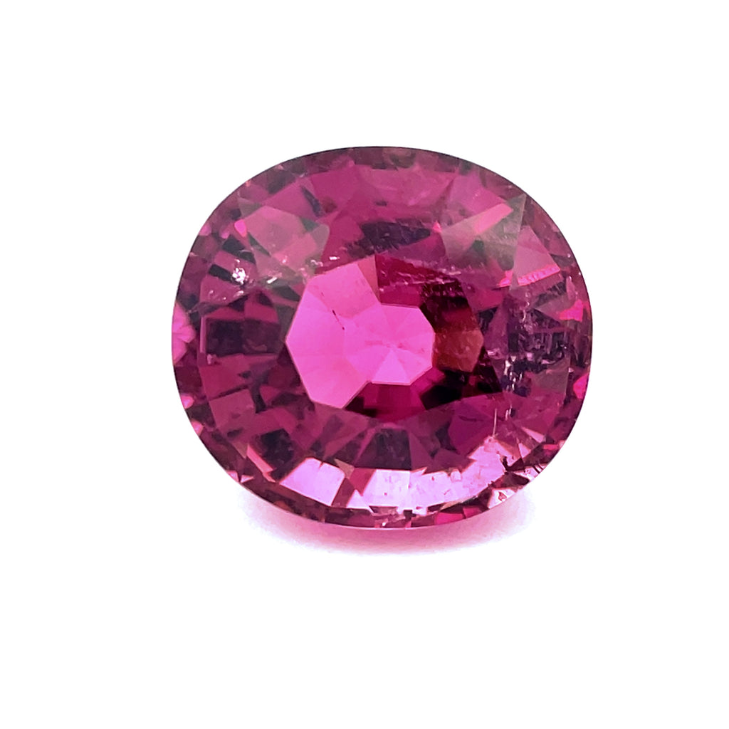 Discover the refined elegance of this 13.22-carat natural rubellite tourmaline, a gemstone prized for its captivating pink radiance. Cut in a sophisticated oval shape measuring 14.9 x 13.5 x 10.3 mm, its faceted surfaces capture and reflect light with remarkable clarity. This untreated stone retains its natural character, with slight inclusions that confirm its authenticity. Perfect for the discerning collector or bespoke jewelry designer seeking a gemstone of genuine quality and distinction.