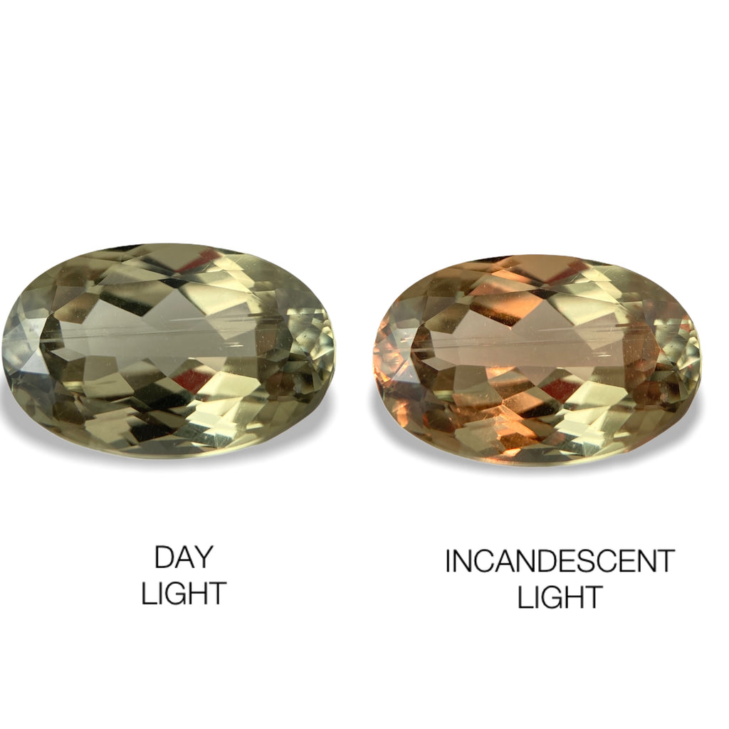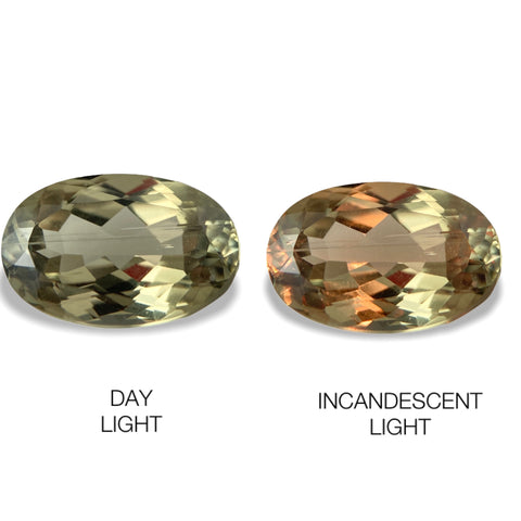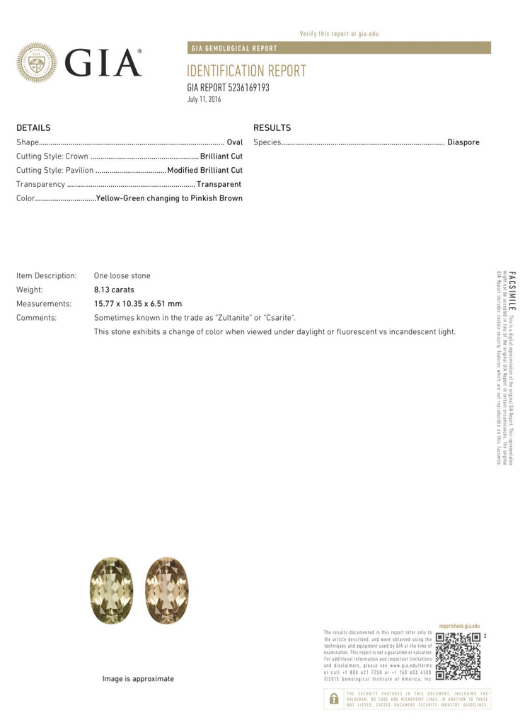 8.13cts GIA Natural Khaki Green Diaspore Color Change Gemstone - Oval Shape - 21857RGT