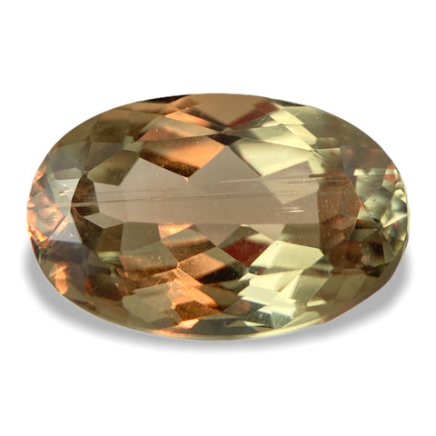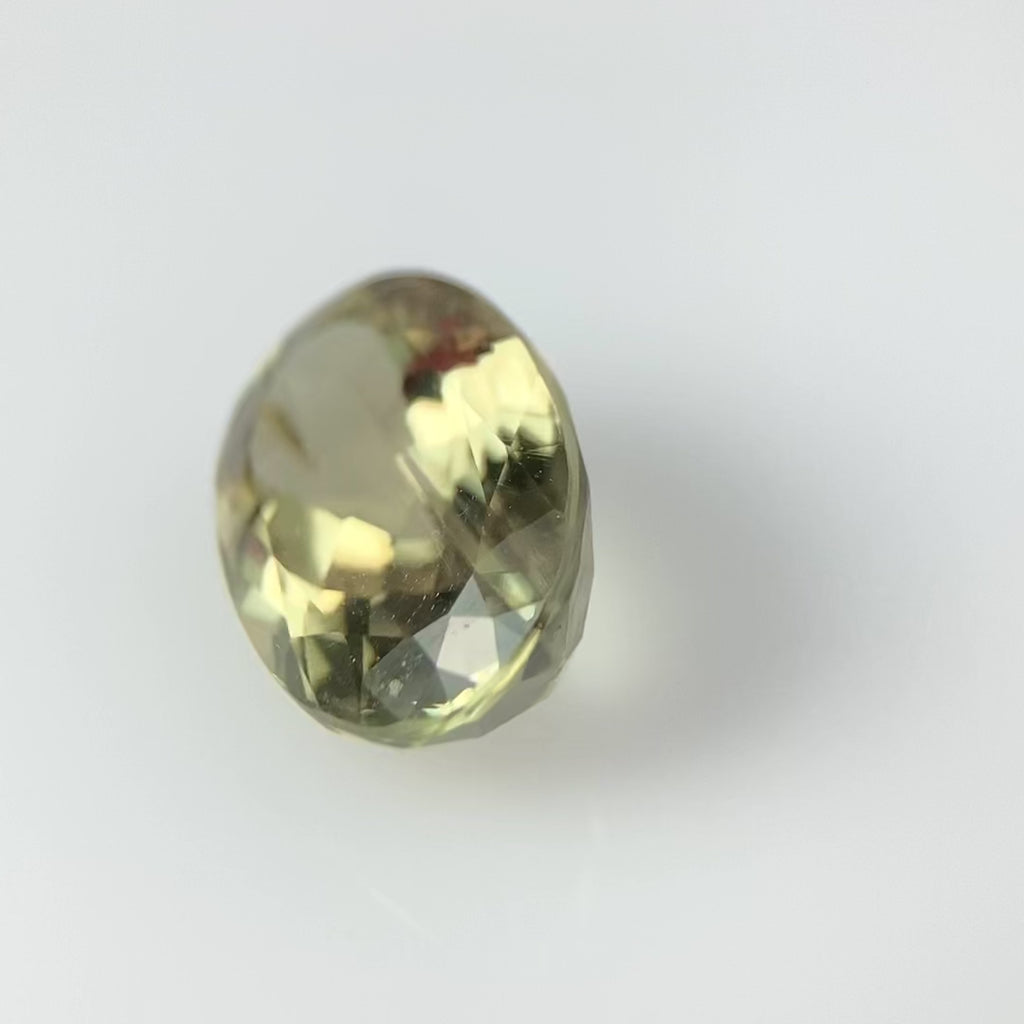 Experience the stunning beauty of nature with our 8.13cts Natural Khaki Green Diaspore Color Change Gemstone. Its vibrant oval shape and faceted cutting style make it a true standout, with a khaki green color that transforms to a rich raspberry red in different lighting. Sourced from Turkey and unheated for a truly natural gemstone.