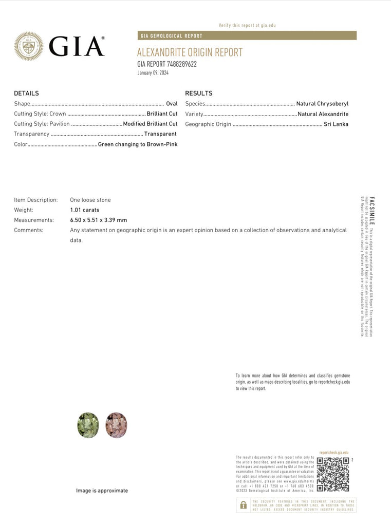 Experience the enchanting beauty of this 1.01 cts GIA certified Natural Alexandrite Color Change gemstone. Its oval shape and faceted cutting style reflect the vibrant green to red color change, making it a true natural wonder. Sourced from Sri Lanka, this gem is free of treatments and boasts a VS clarity for a truly authentic and breathtaking addition to your collection.