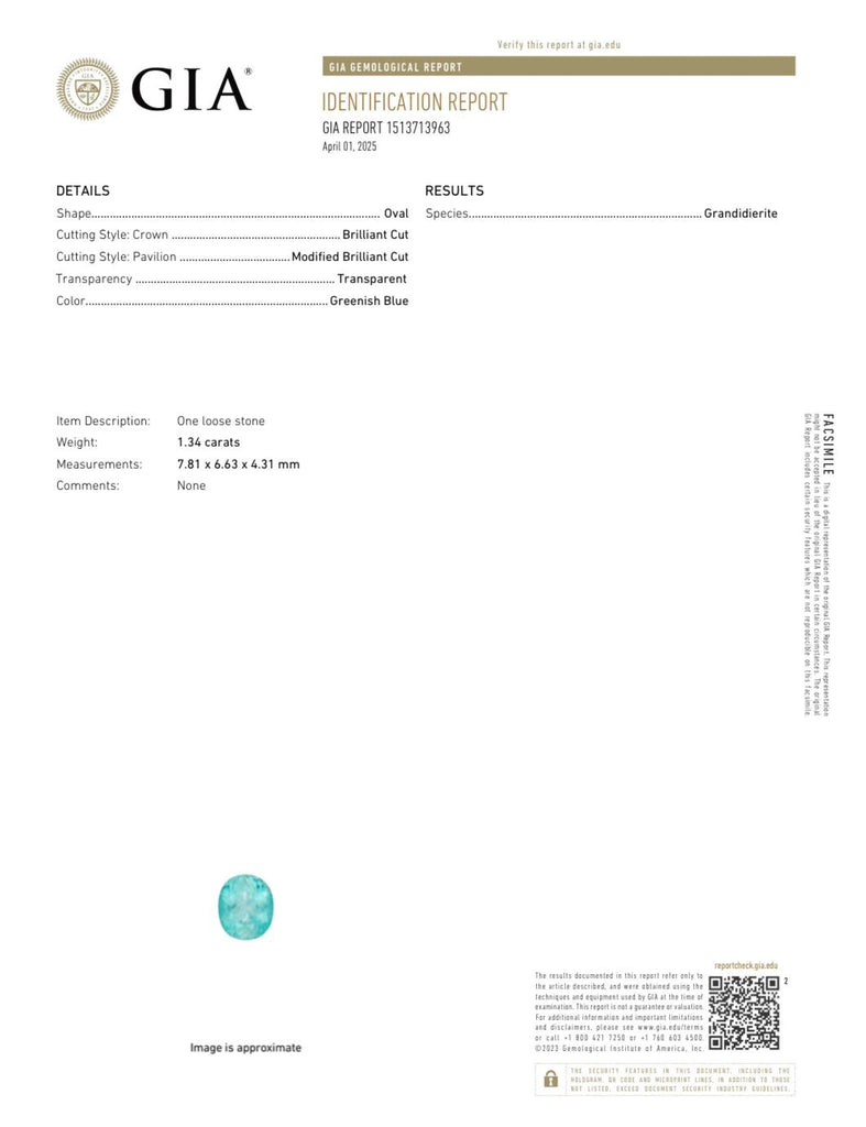 Discover the luxurious beauty of this 1.34ct Natural Greenish Blue Grandidierite Gemstone from GIA. This oval-shaped gemstone features a faceted cut, showcasing its Greenish Blue color with a hint of sophistication. With small inclusions visible, its uniqueness and exclusivity are guaranteed. Certified by GIA and unheated for a truly natural experience.