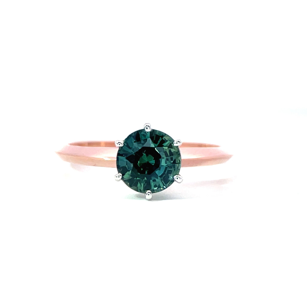 18K Pink Gold Teal Sapphire Engagement Ring - Round Cut - R24040