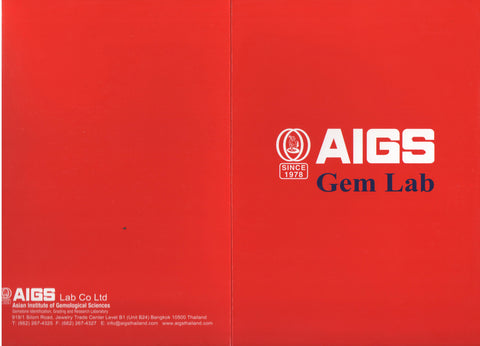 AIGS's Full Report or Gemstone Identification Report comes in a standard A4 size (21.0 x 29.7 cm) hard cover. The report identifies the gemstone and sometimes upon client's request, we also state the origin of the gem when ever possible.